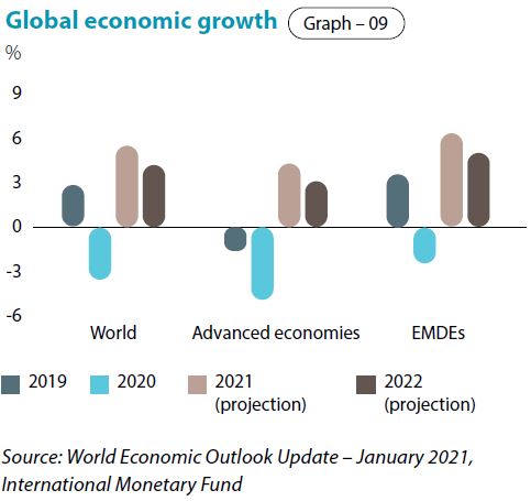 The global economy is projected to rebound with 5.5% growth in 2021 (an upward revision of 0.3%) and then moderate to 4.2% in 2022.