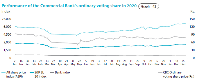 We firmly believe that the Bank's efforts to have an effective communication and active engagement with important stakeholder groups have made the Bank's shares a creditable investment proposition, despite a very challenging economic and operating environment prevailed throughout the year primarily due to the outbreak of COVID-19 in the first quarter of the year. As you are aware, the stock market witnessed an unprecedented setback in its activities after being closed for almost two months and due to limiting trading of shares for just one hour a day initially by the regulators which was later relaxed by increasing the trading time to three and half hours compared to six hours of trading during the pre-pandemic period. However, this situation is in no manner extra-ordinary when compared with all other stock markets around the globe. Although the pandemic had an early shock resulting in both the ASPI and S&P SL20 declining by over 30% and 40%, respectively, both indices recovered remarkably and ended the year demonstrating its resilience by attracting record-breaking levels of trading activity, with a total turnover for the year of Rs. 397 Bn. which was also the highest since 2011. The ASPI closed 2020 on 6,774 points recording a growth of 10.52%, the highest annual increase the index has seen since 2014 and only the 12th occasion the index has seen a double-digit percentage growth in CSE's 35-year history. The ASPI on May 12, 2020 recorded its lowest point in over a decade but recovered from this to post a 59% gain by the end of the year. Although the S&P SL20 index, which features the CSE's 20 largest and most liquid stocks has declined by 10.18% in 2020, the index has recovered substantially indicating a trend similar to the ASPI with 57% growth since 12th May, closing the year at 2,638 points.